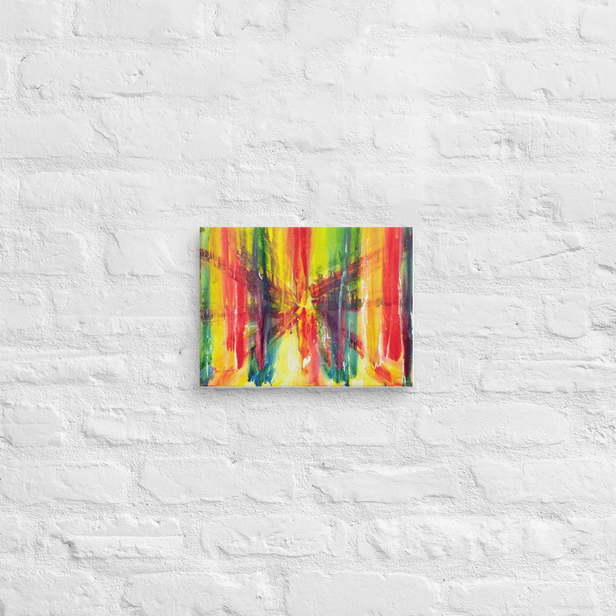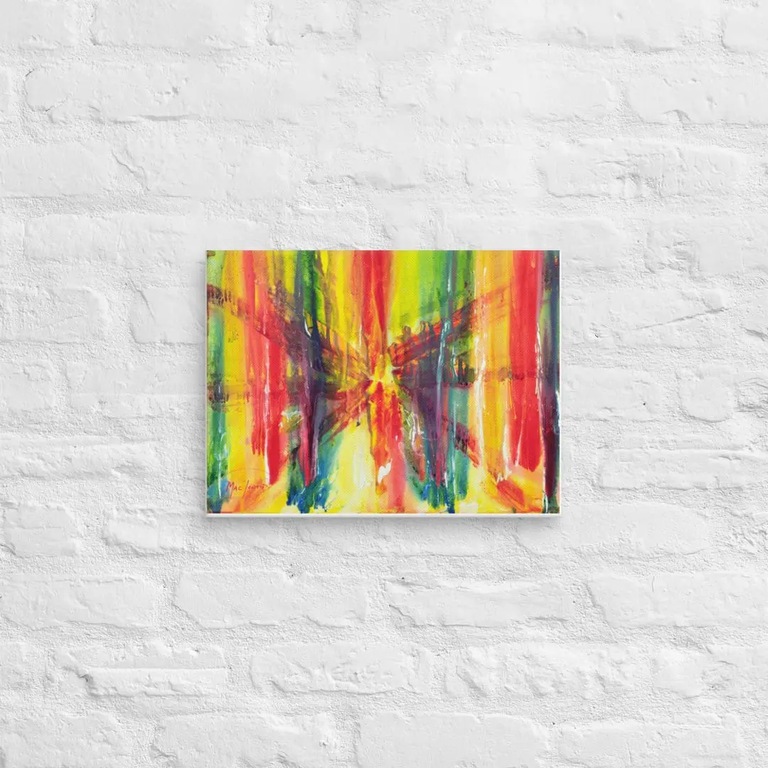 This Ambience Print (Canvas) is a fine art reproduction created from Robert MacDonald’s original painting Bridge to the City on the Water, an original work identified within the Abstract Auras™ Collection and created using the proprietary Auraism™ method. Printed on textured, OBA-free canvas with archival-quality inks, the radiating strokes, vertical drips, and converging red lines translate into a vivid, ready-to-hang presentation. The print preserves the painting’s depth, movement, and luminous color transitions while remaining a print edition that is not part of the Abstract Auras™ Collection.