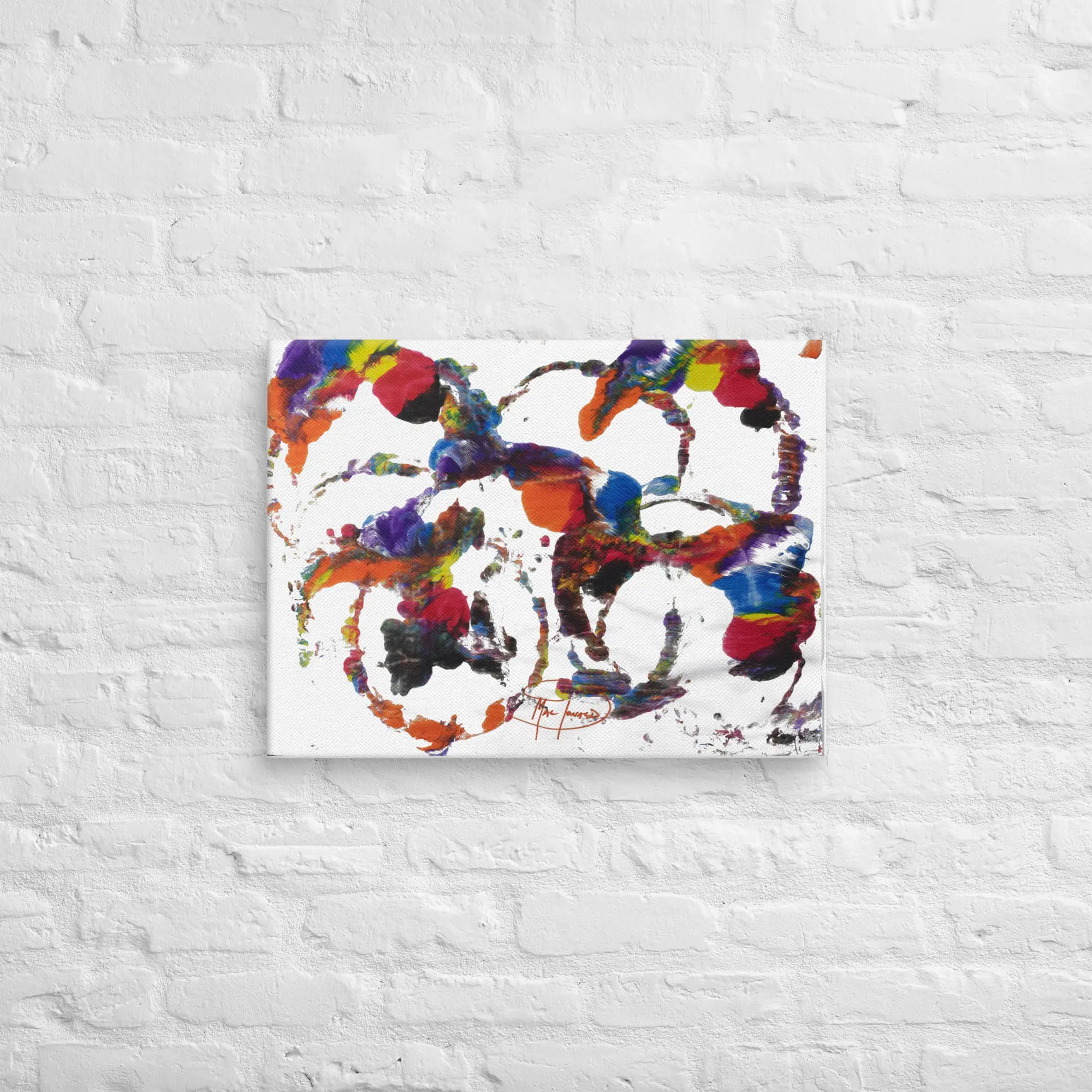 This Ambience Print (Canvas) is a fine art reproduction created from Robert MacDonald’s original painting Color Roundabouts Left, an original work identified as an Abstract Auras™ painting created using the proprietary Auraism™ method. Printed with archival-quality inks on textured, OBA-free canvas, the swirling arcs and layered splatters expand across the surface with depth and vibrancy, immersing the viewer in cycles of color and motion. The clean ground heightens contrast and clarity, giving the composition a strong presence in contemporary spaces.