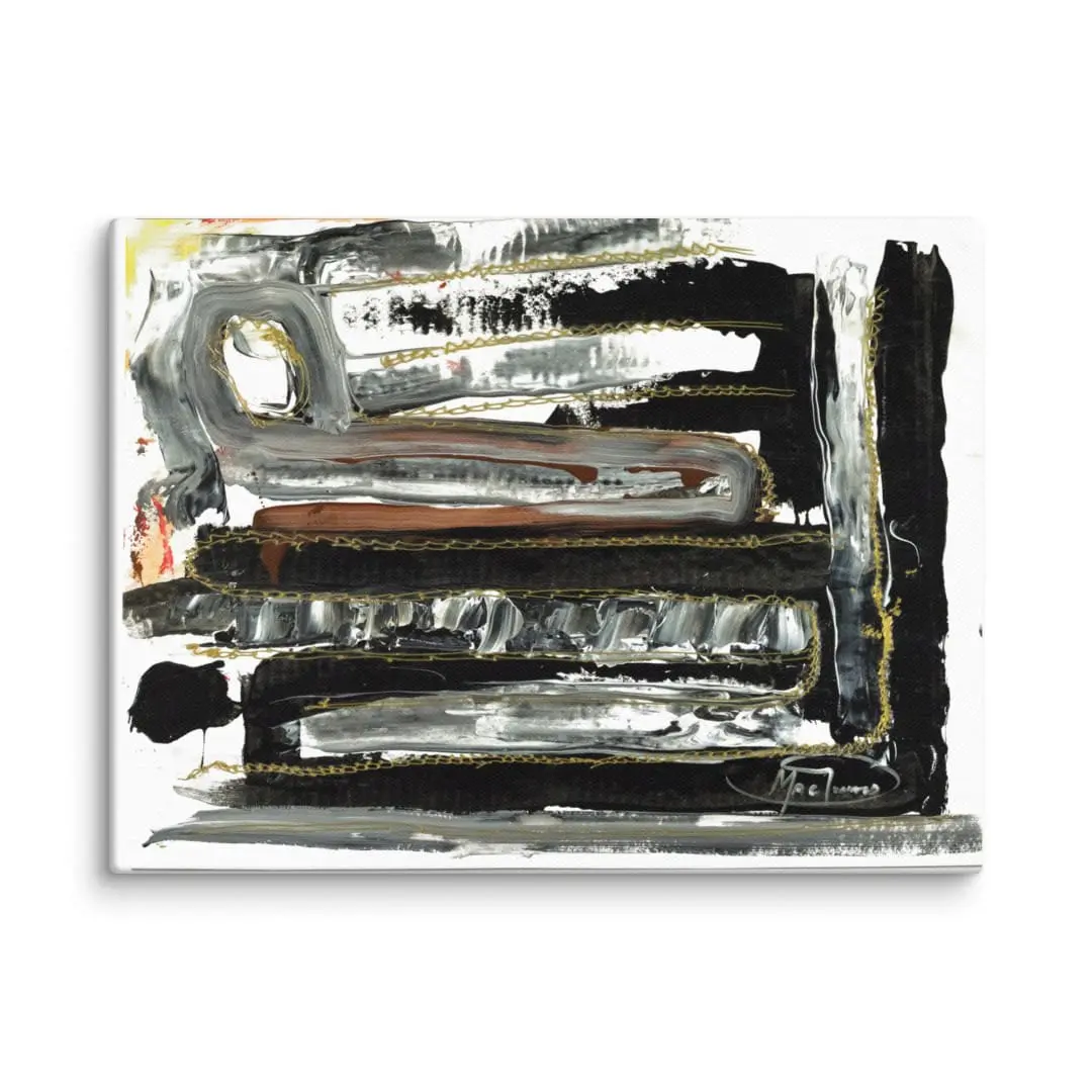 This Ambience Print (Canvas) is a fine art reproduction created from Robert MacDonald’s original painting Layers with Bling, an original work identified as an Abstract Auras™ painting created using the proprietary Auraism™ method. Printed with archival-quality inks on textured, OBA-free canvas, expressive strokes in black, white, and grey are accented by luminous gold, amplifying both visual and tactile energy. The layered abstraction expands across the canvas surface with clarity, depth, and contemporary impact.